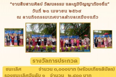 ขอประชาสัมพันธ์กิจกรรมการแข่งขัน"งานสืบสานศิลปวัฒนธรรม และภูมิปัญญาท้องถิ่น ประจำปี 2569"