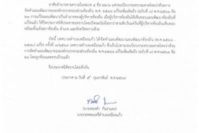 ประกาศเทศบาลตำบลเหมืองแก้ว เรื่อง บัญชีรายการที่ดินและสิ่งปลูกสร้าง ประจำปี 2569