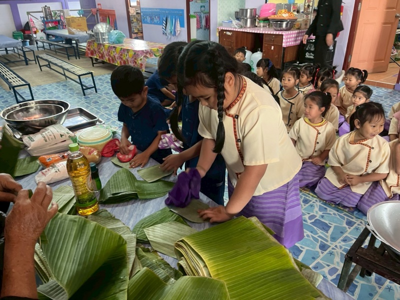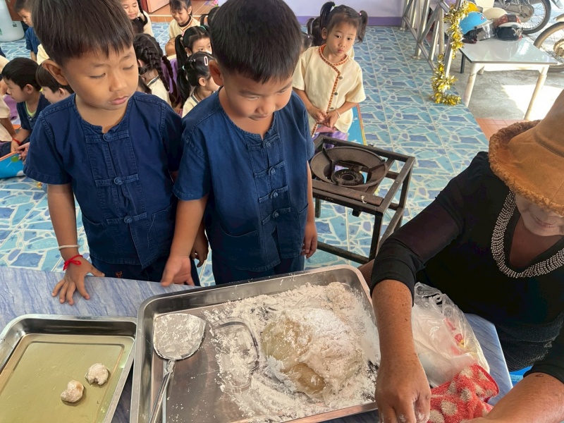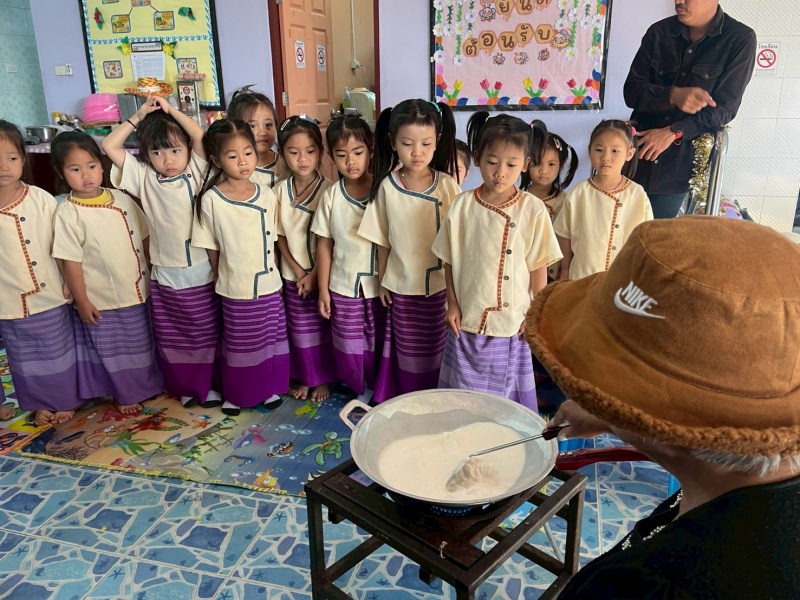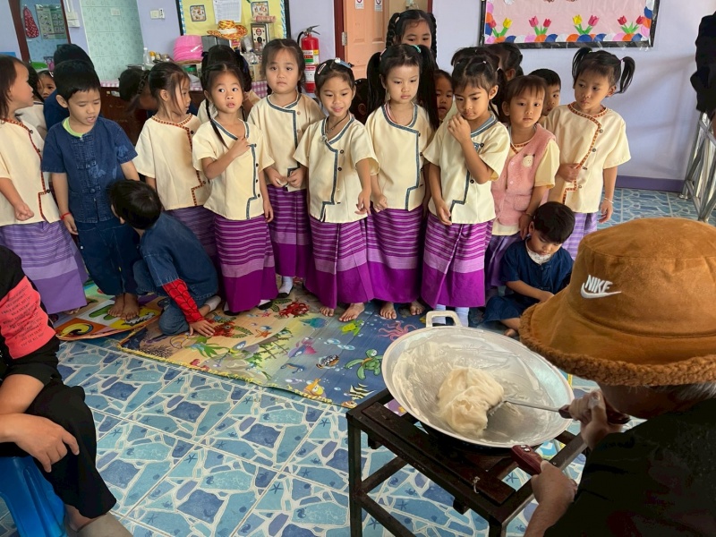 โดยมีวัถตุประสงค์เพื่อให้เด็กได้รู้จักและทราบถึงขั้นตอนวิธีการทำขนมจ๊อก (ขนมเทียน) ส่งเสริมให้เด็กเกิดการเรียนรู้ผ่านการได้ลงมือปฎิบัติจริงจากวิทยากรท้องถิ่น เกิดการเรียนรู้วัฒนธรรมท้องถิ่นของตนเองและมีส่วนร่วมในการอนุรักษ์ขนมพื้นบ้านให้คงอยู่ต่อไป แลละให้ชุมชนได้มีส่วนร่วมในการส่งเสริมและสนับสนุนการเรียนรู้เกี่ยวกับการทำขนมจ๊อก(ขนมเทียน)