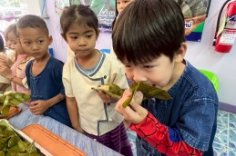 โดยได้รับเกียรติจาก นางพรรณี พานิช ปราชญ์ชุมชน ด้านภูมิปัญญาท้องถิ่นด้านอาหาร เป็นวิทยากร ในกิจกรรมสาธิต สอนทำขนมจ๊อก(ขนมเทียน)