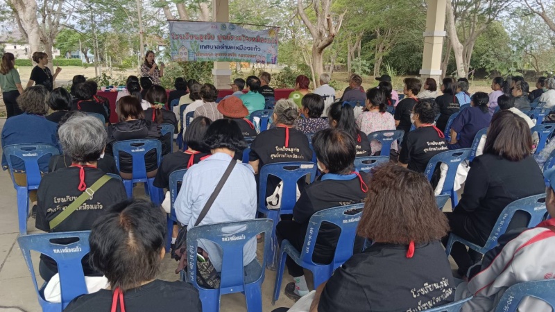 โดยวิทยากรได้นำผู้สูงอายุของโรงเรียนทำกิจกรรมต่าง ๆ เช่น การเคารพธงชาติ , การสวดมนต์ไหว้พระ , กิจกรรมนันทนาการ , การให้ความรู้และฝึกประดิษฐ์ตุงใยแมงมุม