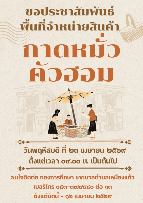 ขอประชาสัมพันธ์พื้นที่จำหน่ายสินค้า "กาดหมั้ว คัวฮอม" ประจำปี 2569