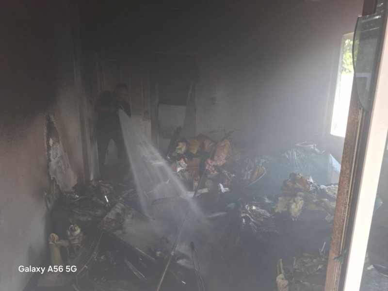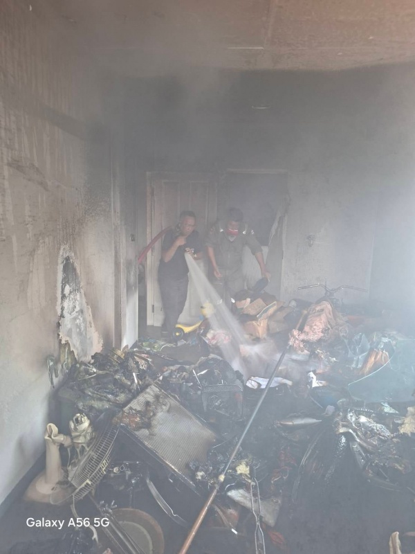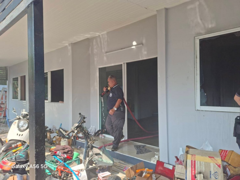 จึงได้นำรถบรรทุกน้ำ จำนวน 1 คัน พร้อมเจ้าหน้าที่ เข้าดำเนินการระงับเหตุเพลิงไหม้บ้านหลังดังกล่าว