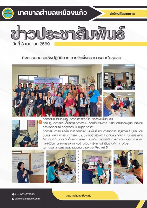 กิจกรรมอบรมเชิงปฏิบัติการ การจัดตั้งธนาคารขยะในชุมชน