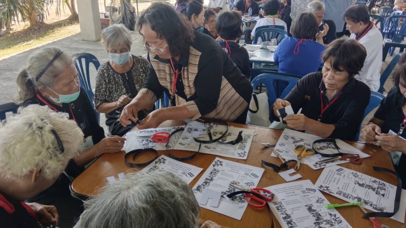 กิจกรรม "งานฝีมือ ทำเข็มกลัดโบว์จากริบบิ้น และวิชาสังคมกฎหมายและสิทธิประโยชน์ของผู้สูงอายุ"