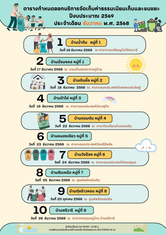 ตารางกำหนดออกบริการจัดเก็บค่าธรรมเนียมเก็บและขนขยะ ปีงบประมาณ 2569