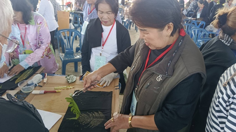 โดยวิทยากรได้นำผู้สูงอายุของโรงเรียนทำกิจกรรมต่าง ๆ เช่น การร้องเพลงชาติ , การสวดมนต์ไหว้พระและแผ่เมตตา , การสาธิตและฝึกอบรมการสกรีนเสื้อสีดำจากลวดลายใบไม้ เพื่อให้ผู้สูงอายุมีพื้นฐานความรู้ด้านการสกรีนเสื้อและสามารถนำไปต่อยอดด้านการประกอบอาชีพเสริมได้