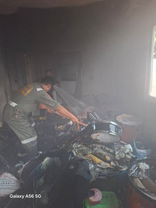 จึงได้นำรถบรรทุกน้ำ จำนวน 1 คัน พร้อมเจ้าหน้าที่ เข้าดำเนินการระงับเหตุเพลิงไหม้บ้านหลังดังกล่าว